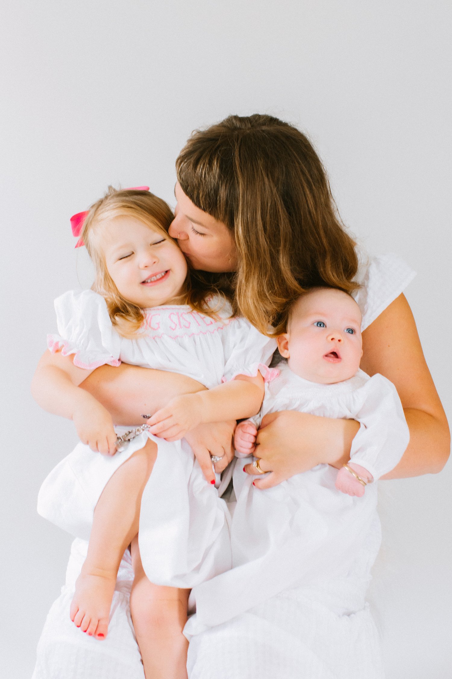 This darling studio session was the second for this family. After doing milestone portraits for their firstborn daughter, they decided to do them again for little sister! We did a mixture of portraits with baby girl all by herself, but of course we had to include big sis & mama, too!